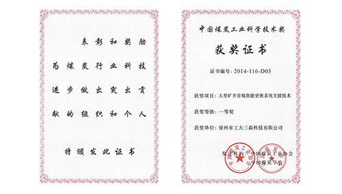 2007年,贾福音董事长带领技术团队对矿山立井提升钢丝绳更换技术难题立项研发。2009年,提出了一项突破性的发明——双无极链无损夹持直线输送钢丝绳技术,革新了传统换绳理念。2012年,历经6年攻坚克难,世界第一台双无极链直线输送钢丝绳换绳车研制成功,并在淮南矿业集团潘一矿试用成功,通过了由国家安监总局组织的科技成果鉴定,技术上达到国际领先水平,填补了国内空白,实现了机械代替人工的设想。