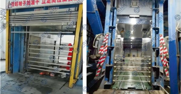 It is locked in conjunction with the cage position and the operating vehicle, and realizes the automatic opening and closing of the cage door curtain with one button, which is safe and efficient, and reduces the labor intensity.