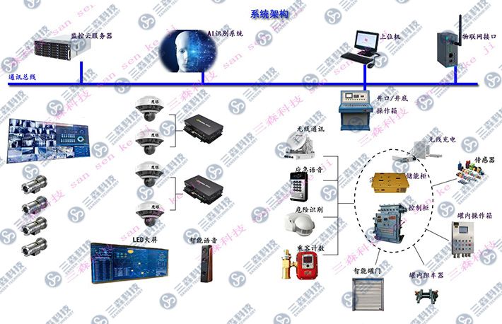 井口、井底车场AI危险识别系统由智能人员安检、智能罐笼、智能推车及智能数据大屏四部分组成,将人工智能、大数据、物联网等先进技术与矿山本质化安全管理相融合对井口区域内设备、人员、环境的安全状态进行动态跟踪、实时监测,并对识别到的危险信息进行预警。