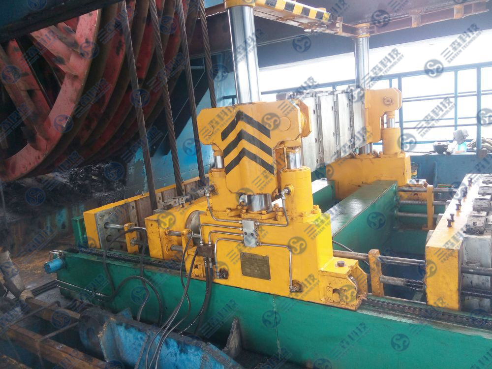 陕煤彬长矿业有限公司胡家河煤矿设计生产能力为1100万吨/年,主井采用落地式多绳摩擦式提升系统,井深546m,容器自重73吨,提升绳直径60mm,提升绳数量为4根,绳间距为350mm,提升速度12m/s。该矿于2014年使用@TT-B/200型双码择绳调换智能保护装置,操作便捷,运行良好,为矿井安全生产提供了重要保障。