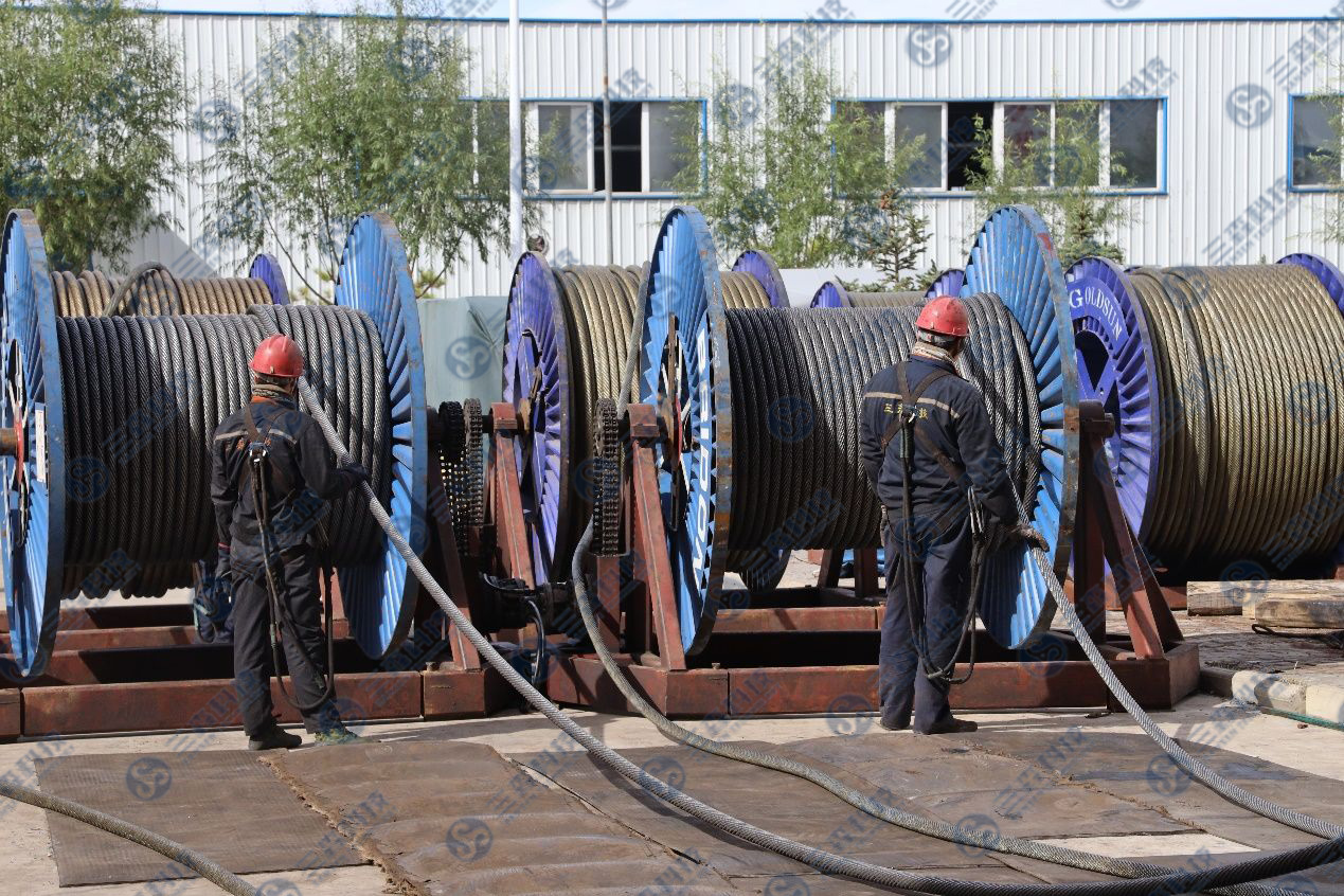 Главный подъемник шахты угольной шахты Muduchaideng является многотросовым трением, высота подъема - 749 метров, количество стальных тросов - 6, диаметр тросов - 48 мм. Поскольку стальные тросы достигли предписанного срока службы, для обеспечения безопасной и эффективной работы транспортного оборудования главной шахты было использовано оборудование для замены первичных тросов от компании SANSEN, и замена первичных тросов была успешно завершена за 10 часов. После замены тросов произведено успешное тестирование подъемника, практически не требующее дополнительной настройки, обеспечивая высокий уровень безопасности и требуя минимального количества рабочих.