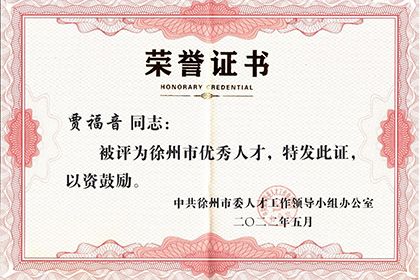 喜讯!热烈祝贺公司董事长贾福音荣获“徐州市优秀人才”称号