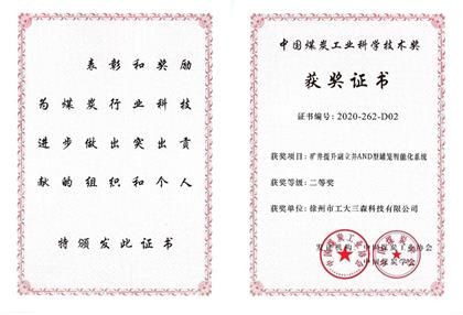 Our company's scientific and technological achievements won the second prize of science and technology of China Coal Industry Association