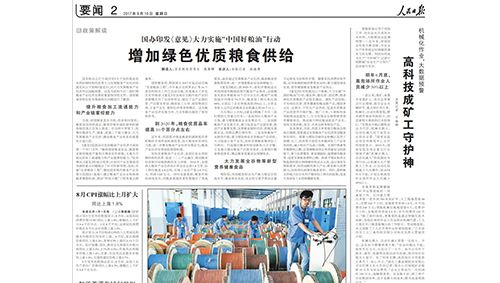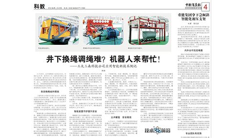 2007年,贾福音董事长带领技术团队对矿山立井提升钢丝绳更换技术难题立项研发。2009年,提出了一项突破性的发明——双无极链无损夹持直线输送钢丝绳技术,革新了传统换绳理念。2012年,历经6年攻坚克难,世界第一台双无极链直线输送钢丝绳换绳车研制成功,并在淮南矿业集团潘一矿试用成功,通过了由国家安监总局组织的科技成果鉴定,技术上达到国际领先水平,填补了国内空白,实现了机械代替人工的设想。